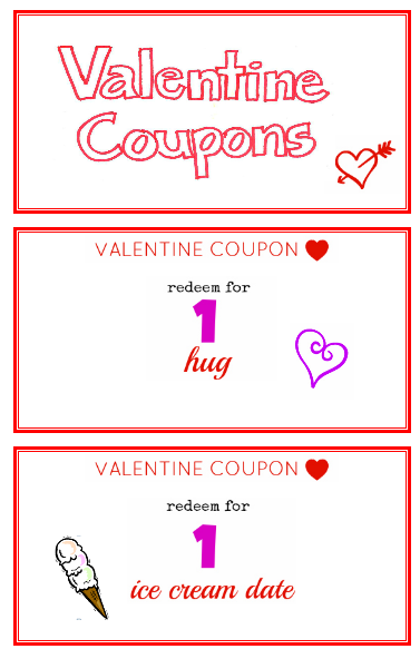 Free Printable Valentine's Day Coupons for Everyone You Love The Valentine's Day coupon books are easy to assemble. Simply load white cardstock ($7 for 50 sheets, Michaels) into a color printer and print our free designs. After you cut out each coupon, hole punch ($3, Office Depot) the corners and use a thin ribbon ($3, Target) to tie the book together.