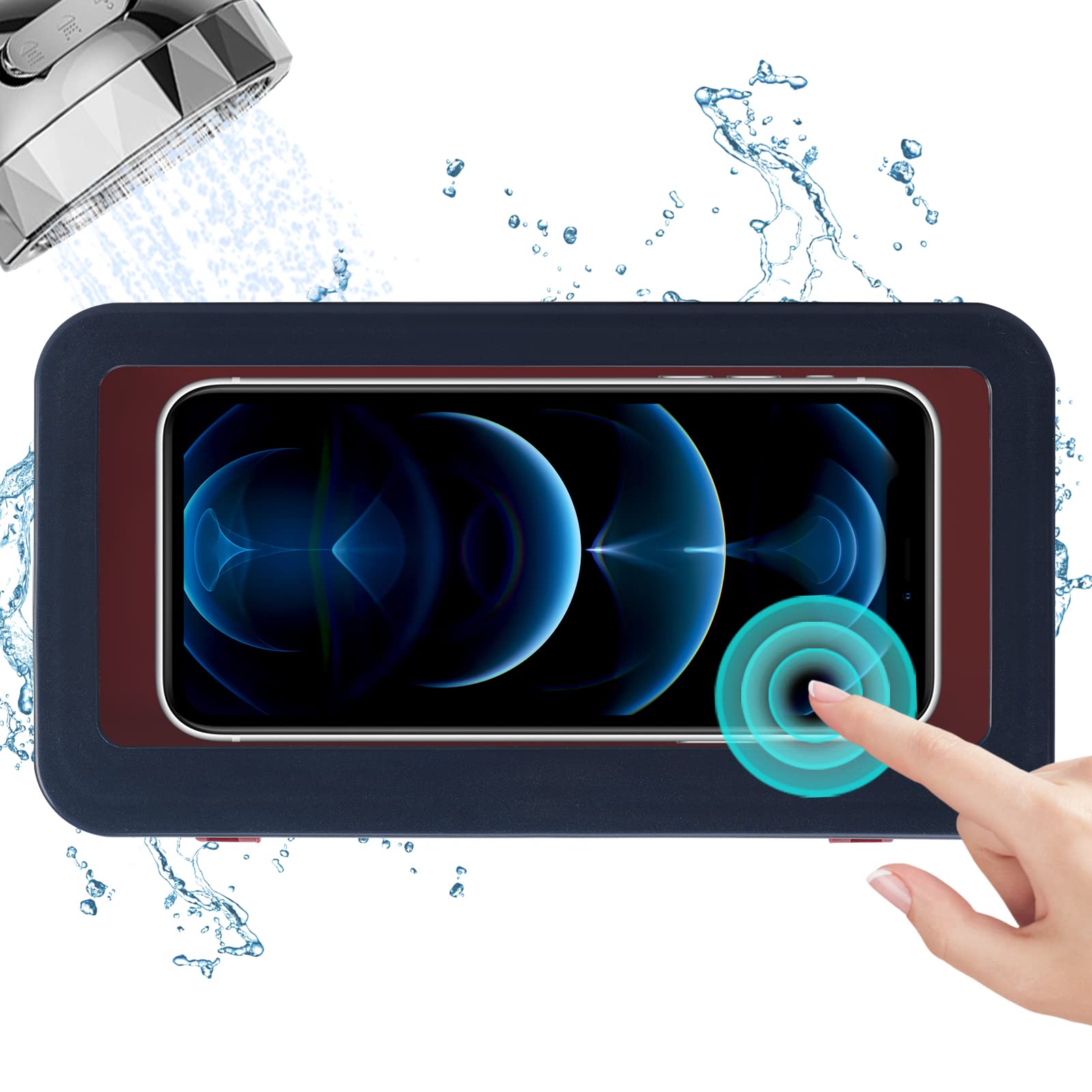 Shower Phone Holder Waterproof Anti-Fog Touch Screen Wall Mount Phone Holder for Shower Bathroom Mirror Bathtub (Blue)